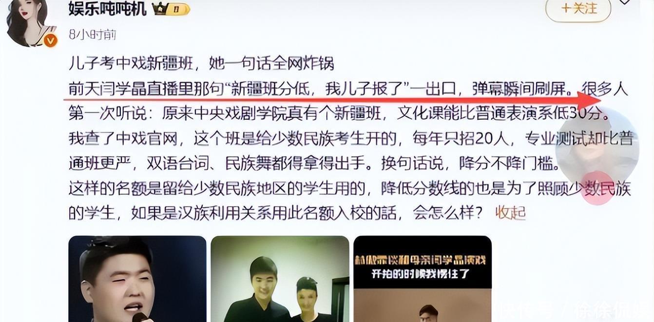 口碑彻底归零上梁不正下梁歪,儿子林傲霏更是在高考中投机取巧,闫学晶自爆儿子高考成绩欠佳,却通过中戏“新疆班”顺利入学。这番话瞬间引发热议,因为中戏“新疆班”是国家为扶持新疆少数民族艺术人才设立的专项计划,有着严格的报考要求:要么是新疆少数民族考生,要么是满足“新疆户籍、学籍、连续就读三年”的汉族考生。
