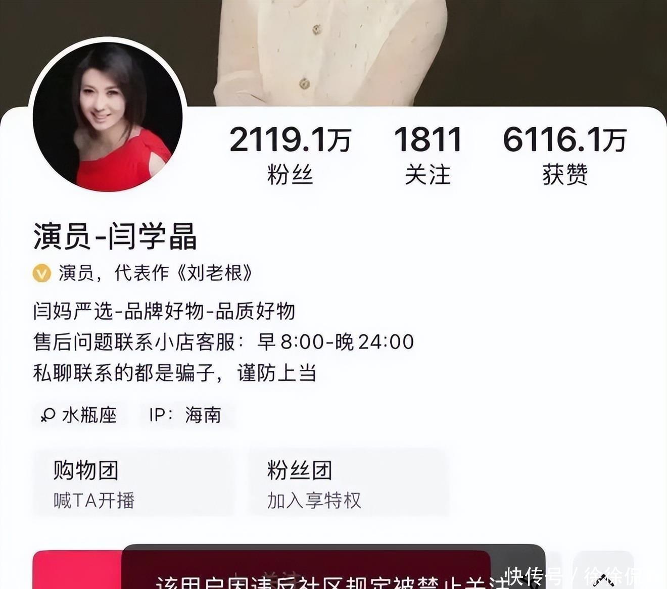 另一代言品牌“统厨”调味料则直接启动解约流程,品牌方公开表示,将依法向闫学晶发起索赔,以弥补此次事件带来的损失。除了商业代言的崩塌,她的演艺事业与社交账号也遭遇重创。抖音、快手两大平台账号被标注“禁止关注”,彻底失去了与粉丝互动、维持曝光的渠道。